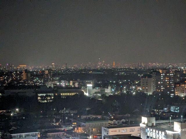 北東は東京都心の明かり。新宿の高層ビル群の奥にはオレンジ色に輝く東京タワーがばっちり見えますが、なぜか東京スカイツリーは見つけることができませんでした。他のビルと被ってしまっているのかもしれません。