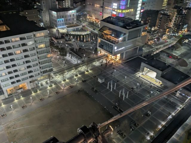 足元を見降ろすと、センター北駅の駅前広場が見えます。駅も含めて開放的な空間は、とっても住みやすそうな雰囲気。