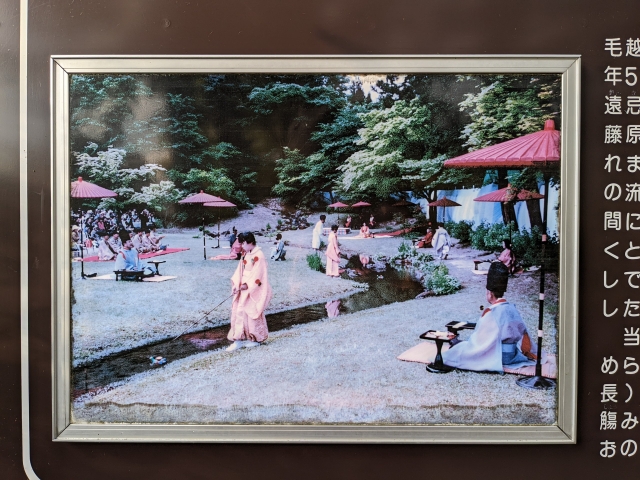 この遣水では、毎年新緑の頃に「曲水(ごくすい)の宴」が開催される場所でもあります。盃を浮かべ、流れてくる間に和歌を詠み終え盃をいただくという催しで、1986年の藤原秀衡の八百年御遠忌の大祭より再現されているそうです。