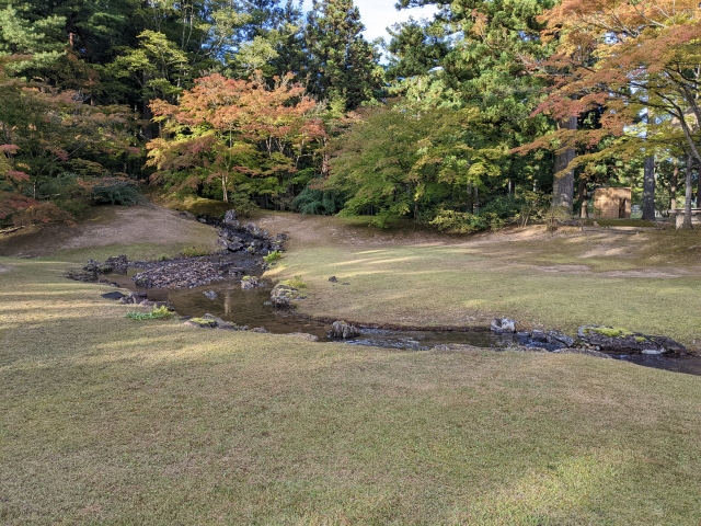 寺院の跡と並び、ここに来たら見ておきたいのが遣水(やりみず)