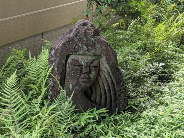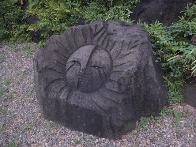 こちらもまた2面タイプですが、反対側には道が無いため、その顔を見るのは少々ハード。草木の中から覗いてみたところ、あまり他では見ないお顔でした。
