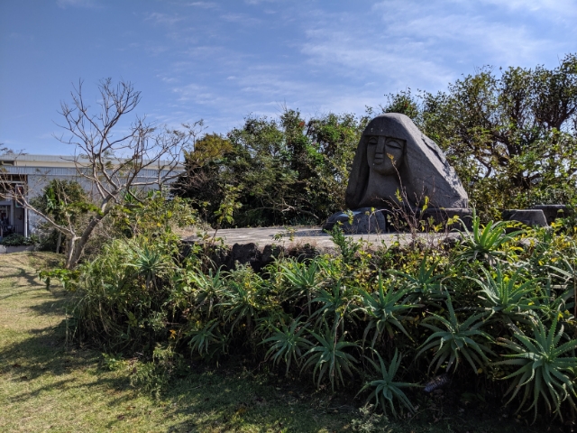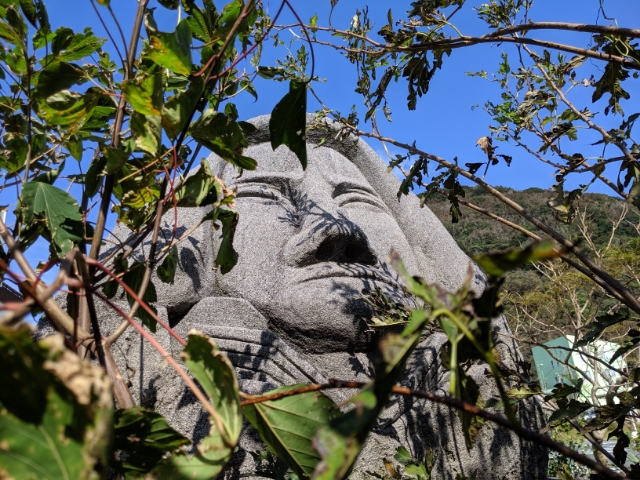道の駅「開国下田みなと」のすぐ隣、汐見台公園という場所にもモヤイ像がいます。海風を浴びて心地よさそうな姿。
