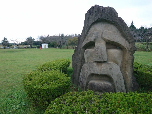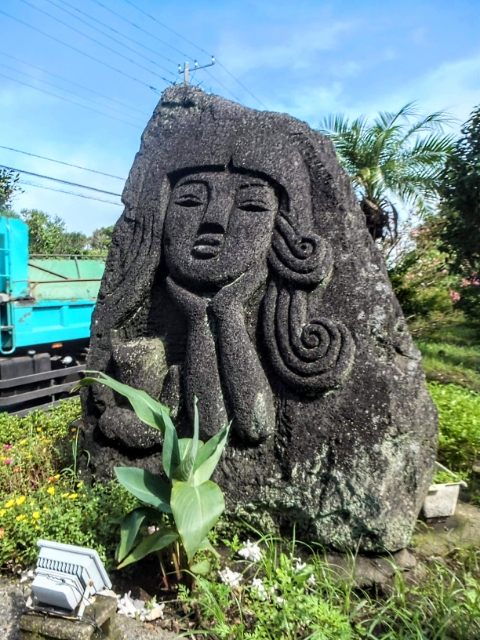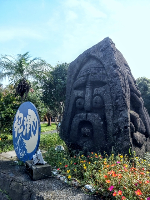 このようにヒゲのないタイプは「アンキ」というらしいです。お兄さん、という意味みたいですね。なお、裏手にまわってみると「オンジィ」が姿を現します。2面タイプのモヤイ像です。