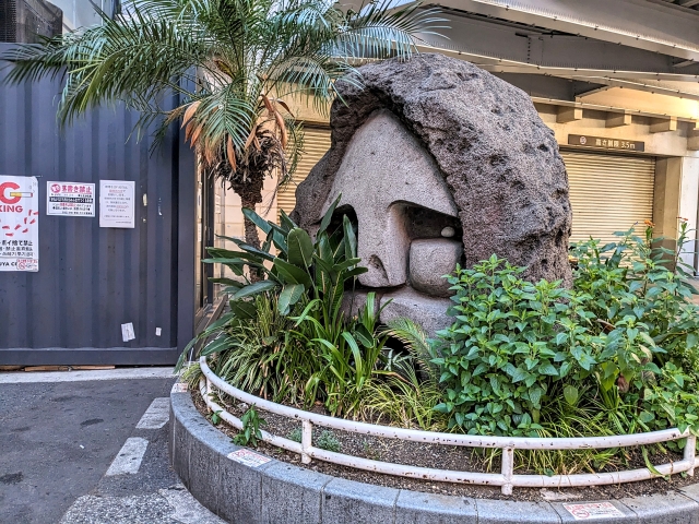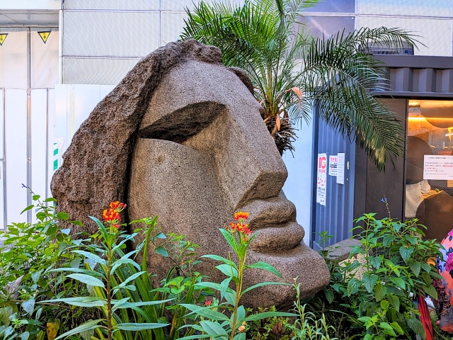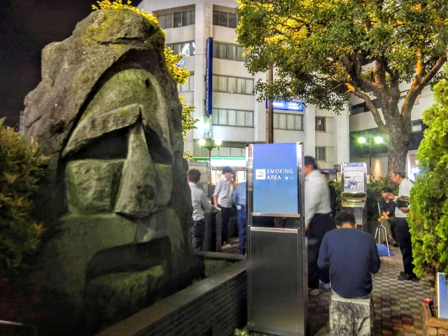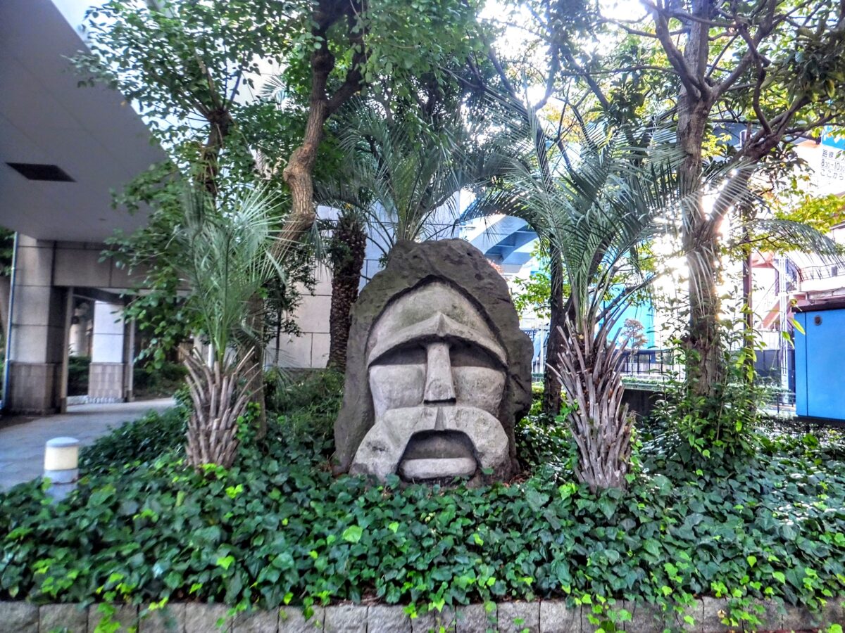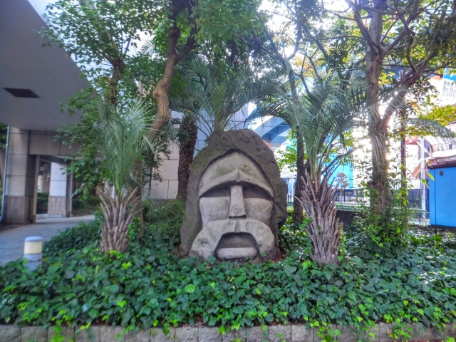 蒲田駅のバスロータリーにもモヤイはいます。喫煙所のすぐそばにいるためか、その表情は少し曇っているように見えますね。