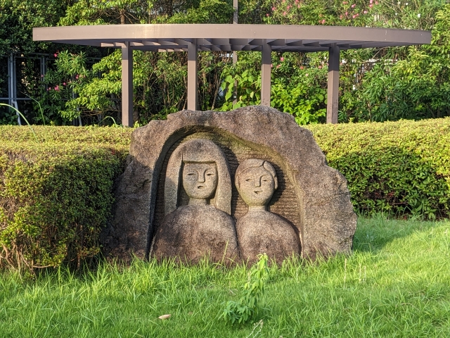 蒲田駅東口商店街と新島本村との友好の証として贈られたものであるそう。寄贈されたのは2体ですが、ここには1体しかおりません。もう1体は、別の場所へと贈られていますが、その話は後ほど。