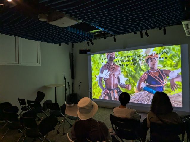 平屋かと思いきや、2階もあります。シアタールームになっており、5分ほどの映像を随時上映。プリミティブな音楽とともに、様々なモザンビークが映し出されます。