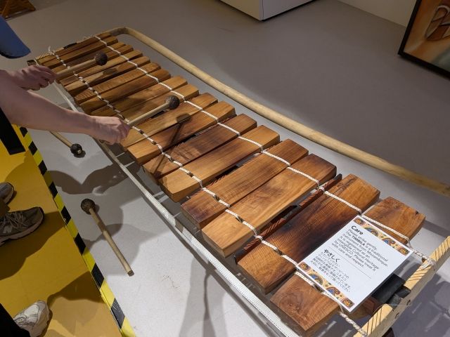 実際に来館者が演奏することも可能。「やさしく叩いてね」とのことです。