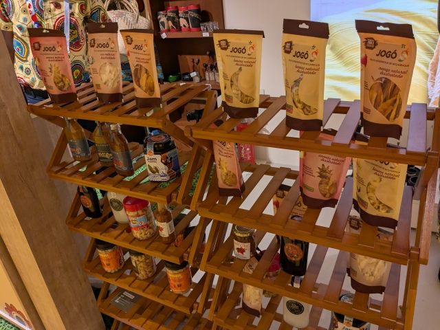 様々な特産品の販売も行っています。木彫りの加工品や華やかな織物は、エスニック感満載です。