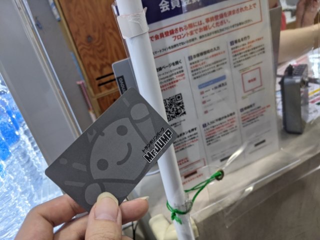 会員登録が済むと、会員登録料の支払い、会員カードの発行、入場券代わりの色付きリストバンド装着、ノンスリップ加工ソックスの受け取り。