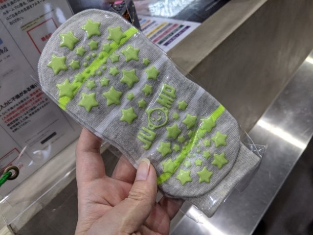 まずは簡単に料金システムをご紹介しますね!ここの施設利用料は90分大人1名2,500円・子供2,000円。そこに会員登録料800円がプラス。また、Mr.JUMP専用のノンスリップ加工ソックス300円の購入が必須となりますが、会員登録の際に一足もらえます。リピート利用時に忘れない限りは支払不要です。