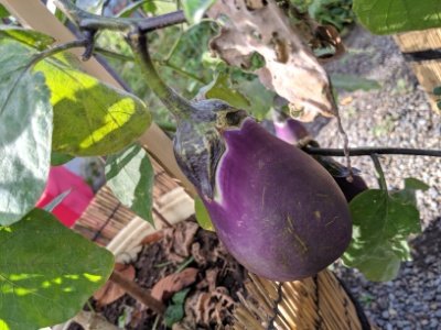 こちらは普通のナスとは違うテラジマナス。かつて百花園周辺の寺島村にて生産されていた江戸野菜の1つです。隅田川上流より流れてくる肥沃な土壌で栽培されていたそうです。