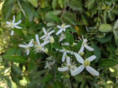 白い小さな花を咲かせるセンニンソウ。まるで線香花火みたいにぴょんぴょんと雄しべ雌しべが飛び出しています。