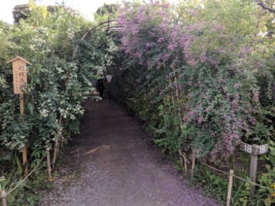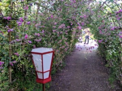 四季の花が楽しめる向島百花園において、とりわけ有名なのが9月後半に咲く萩の花。園内にある胡枝花洞(こしかどう)というトンネル状に並んだアーチには、ハギが絡みつきさながらハギのトンネルを作り上げています。