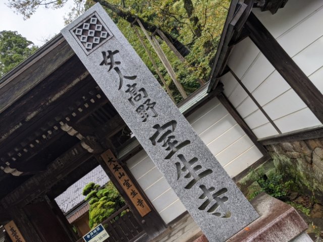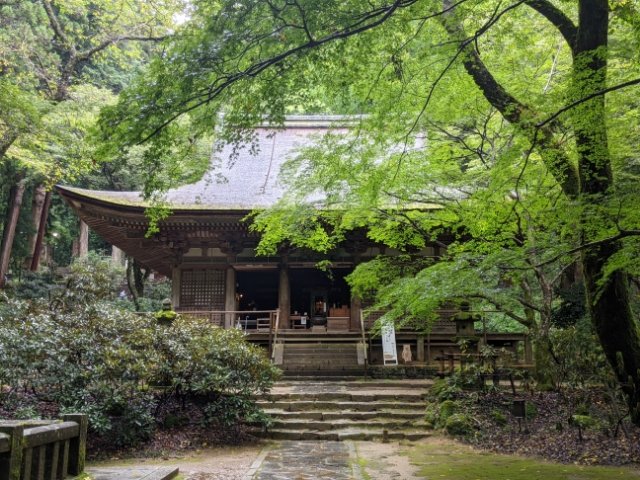 延慶元年(1308)に建立された本堂。木々に包まれた姿は威厳を放っています。堂内では本尊である如意輪観世音菩薩を安置。六臂(6本腕)で片足を上げて座る非常に個性的な仏像で、大阪の観心寺・兵庫の神呪寺(かんのうじ)とあわせて、日本三如意輪に数えられています。
