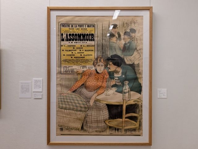 フランスの作家エミール・ゾラの小説「居酒屋」をもとにした演劇を告知するポスター。パリに生きる労働者たちの悲惨な日常が描かれた作品であるそう。絵画や彫刻だけでなくポスターも収蔵しているのが、この美術館の個性的なポイントです。