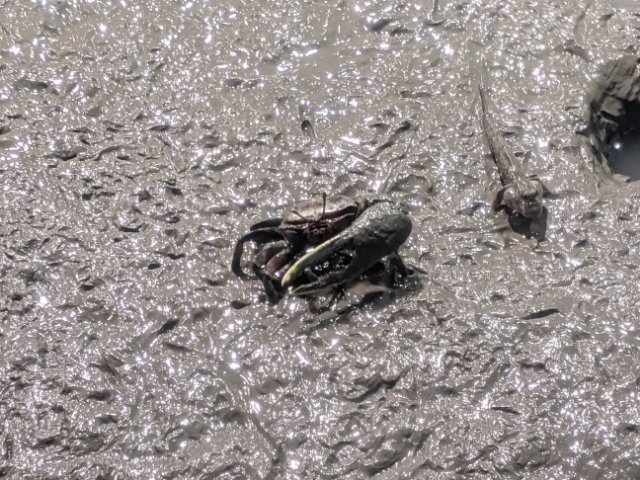 片方のハサミが異様に大きなシオマネキ。のそのそとじっくり歩いています。意外にも横移動だけでなく、縦移動する姿も・・・!カニ=横移動しかできないイメージでしたが、実際は縦にも歩くことができるそう。ただし、縦移動はかなりゆっくりしかできないようです。