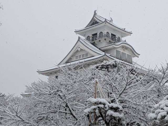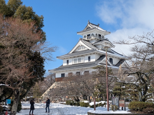 関東に住んでいると忘れがちですが、滋賀県の長浜や米原は雪が深い地域。お城までの道は少々歩きにくい箇所もありましたが、冬に訪れたおかげで真っ白な雪化粧が美しい天守を見ることができ大満足でした。