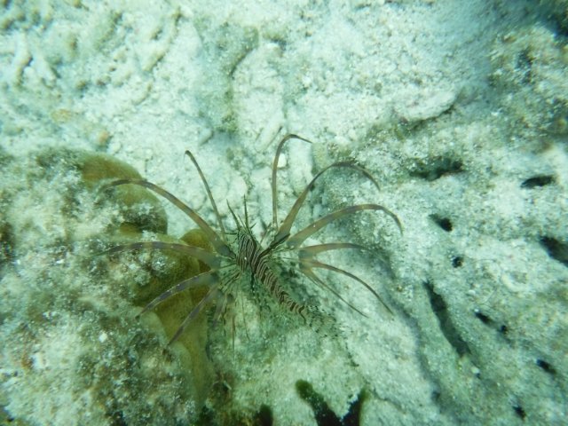 そしてイソギンチャクの近くには、ハナミノカサゴを発見!小さかったのでまだ子供かもしれませんが、毒のあるサカナなので、あまり近づかないように気を付けながら写真撮影。