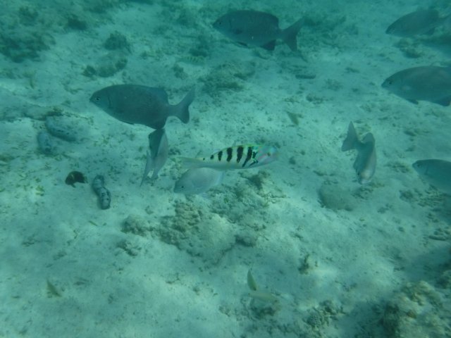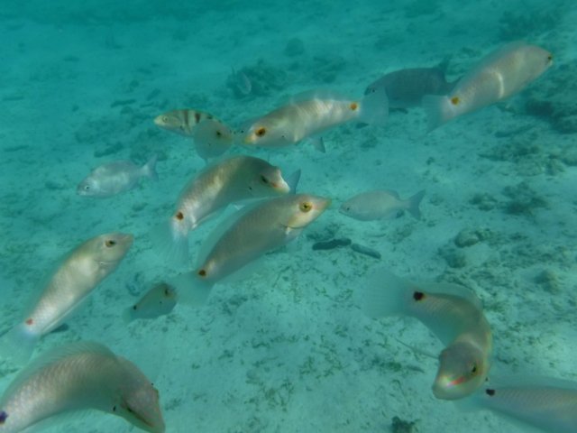 ここで泳いでいる魚たちは、人が来てもあまり逃げません。人慣れしているのか呑気なのかはわかりませんが、息継ぎで水面に上がっても、逃げずに待っていてくれます。