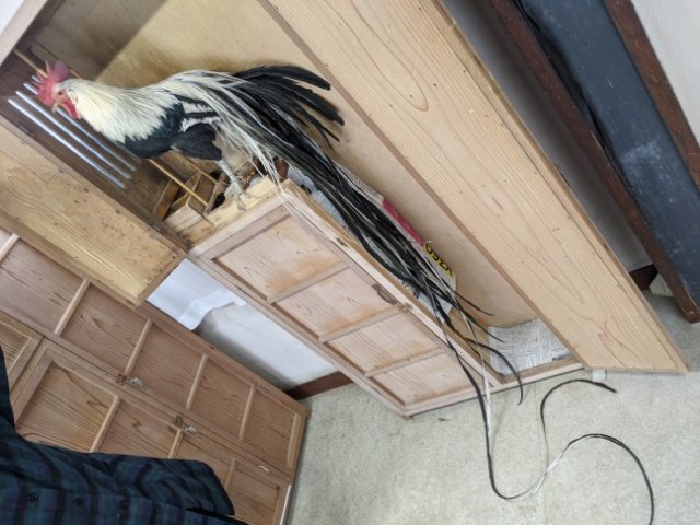 一見すると生きている長尾鶏はいないように見えますが、確かに感じるニワトリの香りと、ときどき響く鳴き声。