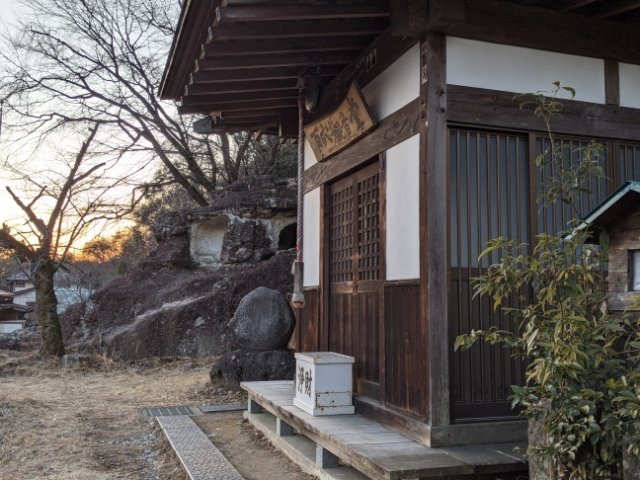 穴が並ぶ岩肌には、百穴観音堂も建てられています。こちらは比較的新しいもののようです。