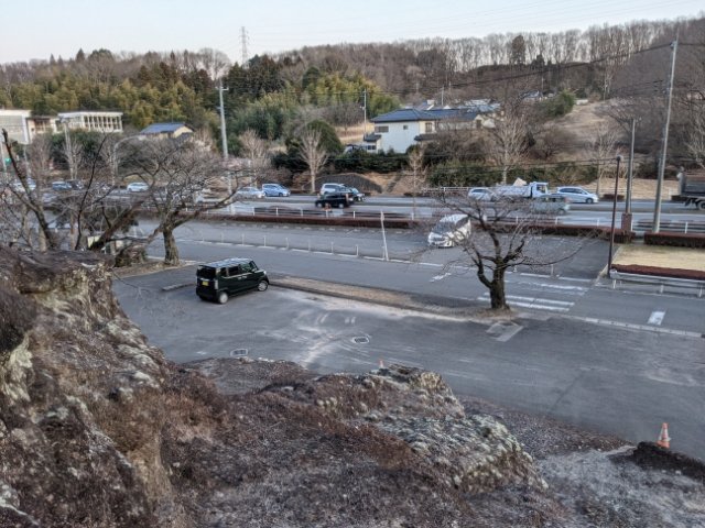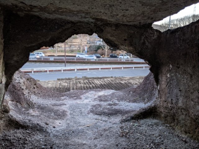 穴の奥行きは1〜2mほど。中に入って外を見ると、次々と通り抜ける車が視界に入ります。