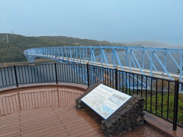 ここは黒之瀬戸大橋を一望できるビュースポット。全長は502m、竣工は1974年。以前は渡し舟によって渡っていた島ですが、この橋の開通とともに島の人々の暮らしは発展していきました。