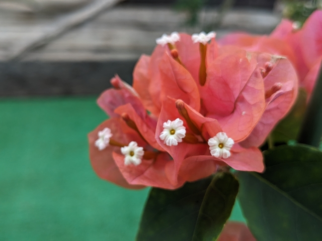 今まで何度も見てきたブーゲンビリアですが、初めて知りました・・・!よくある「本当の花はこっち」というパターン。本当の花が地味過ぎてあまり納得がいかないことが多いのですが、このブーゲンビリアは花っぽい見た目で納得でした。