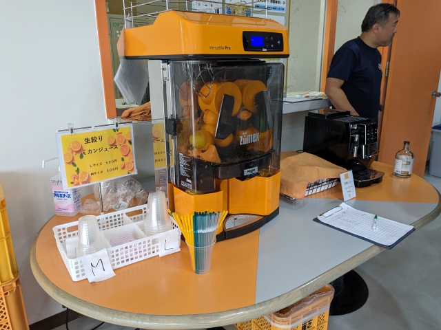 こちらでは、生搾りみかんジュースの販売も行っていました!フレッシュな味をその場で楽しめる人気のサービスです。