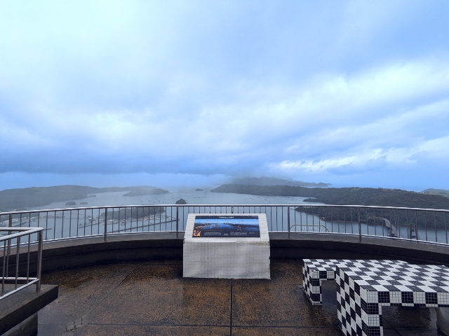 長島の北部に設置された絶景が楽しめる針尾公園。設置された展望台からは、すぐ近くの伊唐島や天草諸島を見渡すことができます。