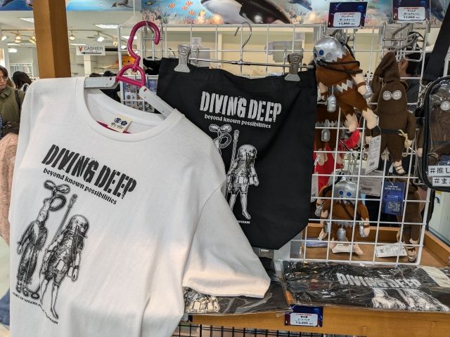 館内で見かけたときは、「昔の人もいろいろなアイディアで海の中での活動を夢見たんだろうな」くらいにしか思っていませんでした。一通り巡り終えて出口のショップを見ていると衝撃の商品が。