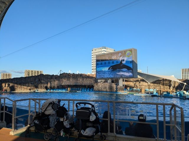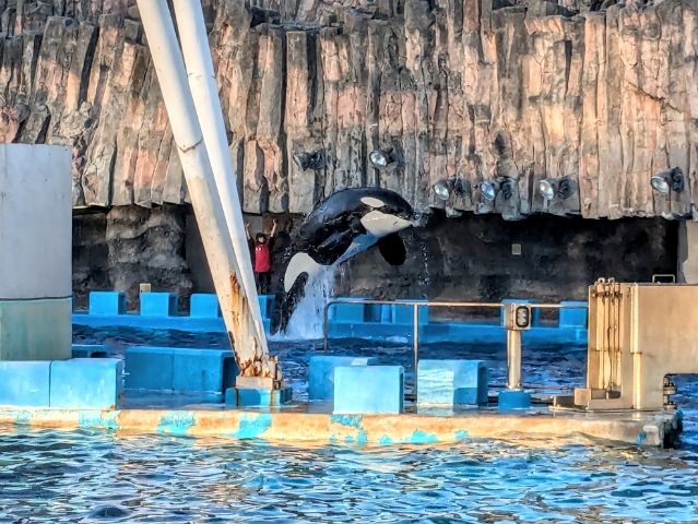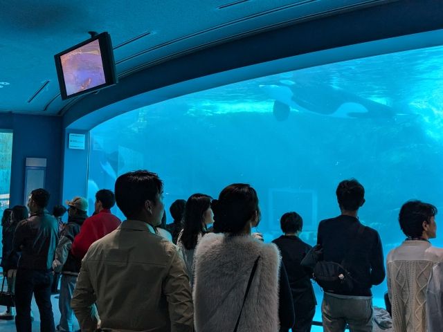 2024年11月時点では、国内でシャチを飼育しているのはここ以外では「鴨川シーワールド」(千葉県)と「神戸須磨シーワールド」(兵庫県)だけ。オスのアースとメスのリンの2頭が飼育されており、アースは16歳で体長は6m。日本のシャチで最大とのこと。