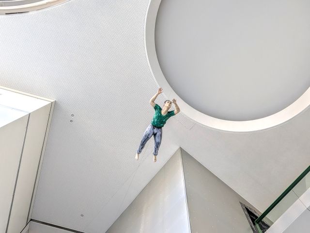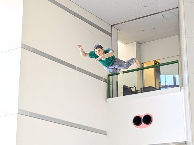 ここで上を見上げると、宙づりの人が!!!こちらも同じくジョナサン・ボロフスキーによる《フライングマン》。