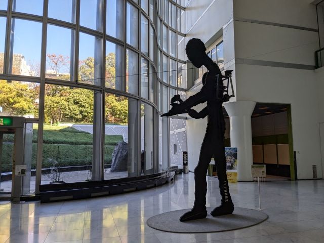 常設展示室の入口にたたずむのは《ハンマリングマン》by ジョナサン・ボロフスキー。黒いシルエット型のヒトガタが、歯車の音を鳴らして動き続けます。どこか職人のような姿は、靴屋のイメージで作られたそうです。