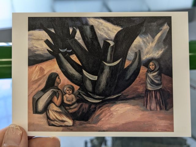 《メキシコ風景》by ホセ・クレメンテ・オロスコは、不思議な植物のまわりに女性が3人集まる様子。くっきりとしたトーンながらも幻想を感じる作品です。