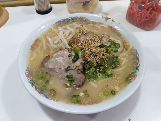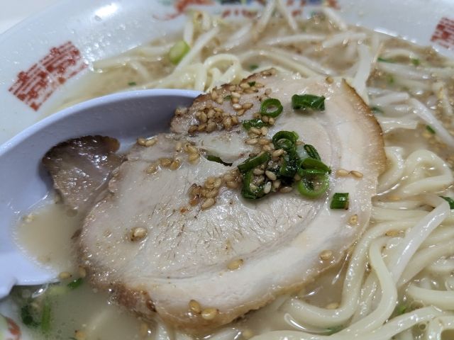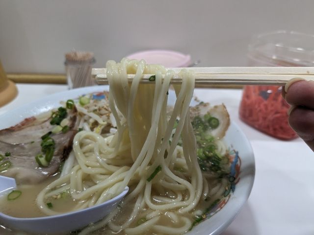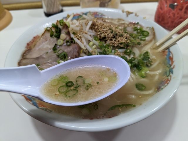 スープはさらっとしているけど、かなりしっかり味のとんこつ。