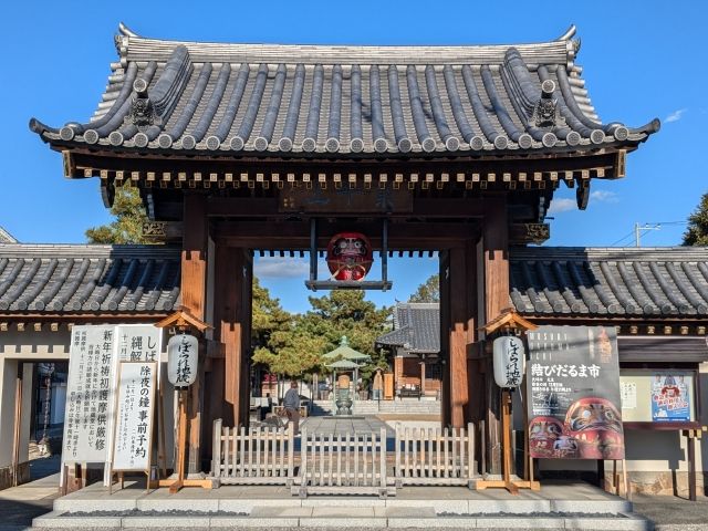 山門にはダルマが掲げられています。12/31に「結びだるま市」が開催されるそうなので、おそらくそれに向けてのものかと思います。