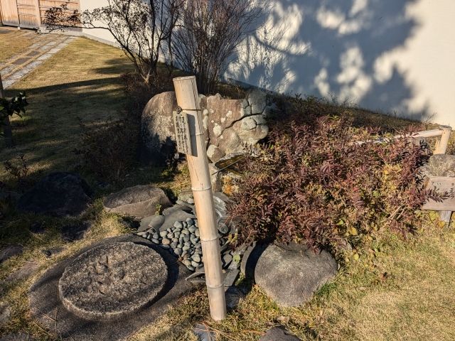 おなじみの水琴窟もあります。柄杓で瓦に水をかけると、その下に埋まる瓶に雫が落ち、澄んだ音色が響き渡ります。