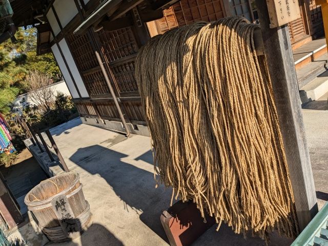 もし願いが叶ったならば、縄解きをするのが習わしであるそうで、解いた縄を入れる桶も置かれていました。これって、自分が巻いた縄の識別は難しそう。どれか1本解けば良いのでしょうかね。