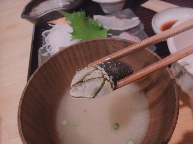 そして味噌汁はカメノテ!名前の通りカメの手にそっくりな貝。カメノテそのものはほとんど味がしませんが、磯の風味あふれるお味噌汁はとっても美味しい!