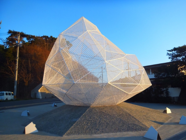 同じく宮浦港にある『直島パヴィリオン』by 藤本壮介。ステンレスの網を組み合わせてできた作品で、「27の島がある直島町の、28番目の島」というコンセプトのもと作られたそう。こちらも中に入ることができます。
