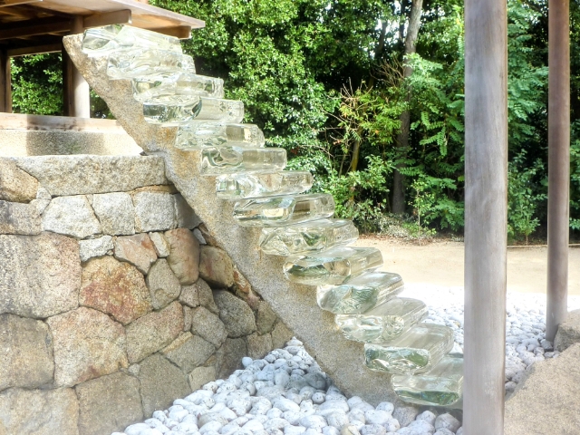 こちらの『護王神社』by 杉本博司は、江戸時代から続く神社を活用した作品です。一見すると普通なお社ですが、よく見ると階段がガラス仕立て。