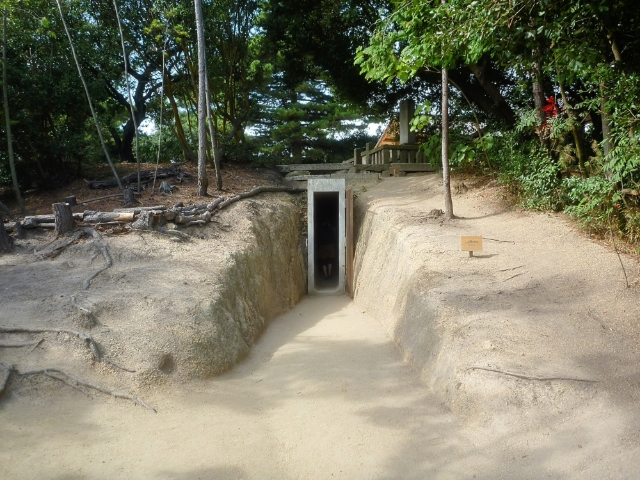 裏手にまわると、まるで古墳の埋葬施設のような石室が姿を現し、先ほどのガラス階段の下部へと潜り込むことができます。