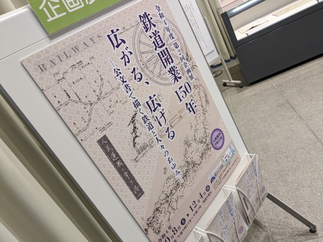 新橋〜横浜間で日本初の鉄道が開通してから150年、全国各地へ広がっていった鉄道網に関連する資料を集めた展示です。内容はやっぱり固めではありますが、解説パネルはシンプルで読みやすい。