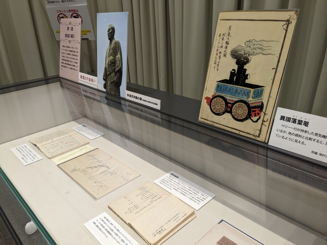 漂流した結果アメリカに流れ着いたジョン万次郎が見た鉄道に関する記録、ペリー一行が持参したという蒸気機関車の絵、日本初の鉄道は板張りだっため生まれた貸座布団営業に対する許可書など、じっくり見てみると面白いものがたくさん。