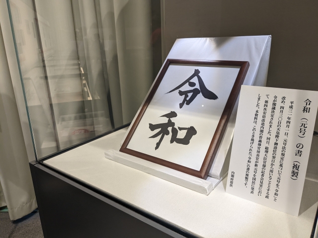 目を引くのは「令和の書」の複製。