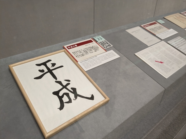 さらには一つ前の元号、「平成の書」も展示されています。昭和64年1月7日、小渕恵三官房長官(当時)によって発表された平成。記憶に新しい方はさすがにいないでしょうかね。