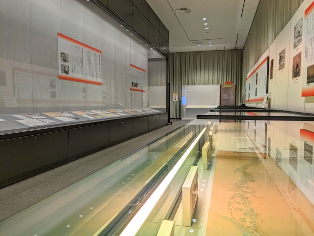 館内入って右側は常設展示室。所蔵する公文書のうち、数点を公開しています。一部屋、というか一通路くらいというボリュームなのでサクッと見るだけならあっという間。フラッシュなしならば撮影も可能です。