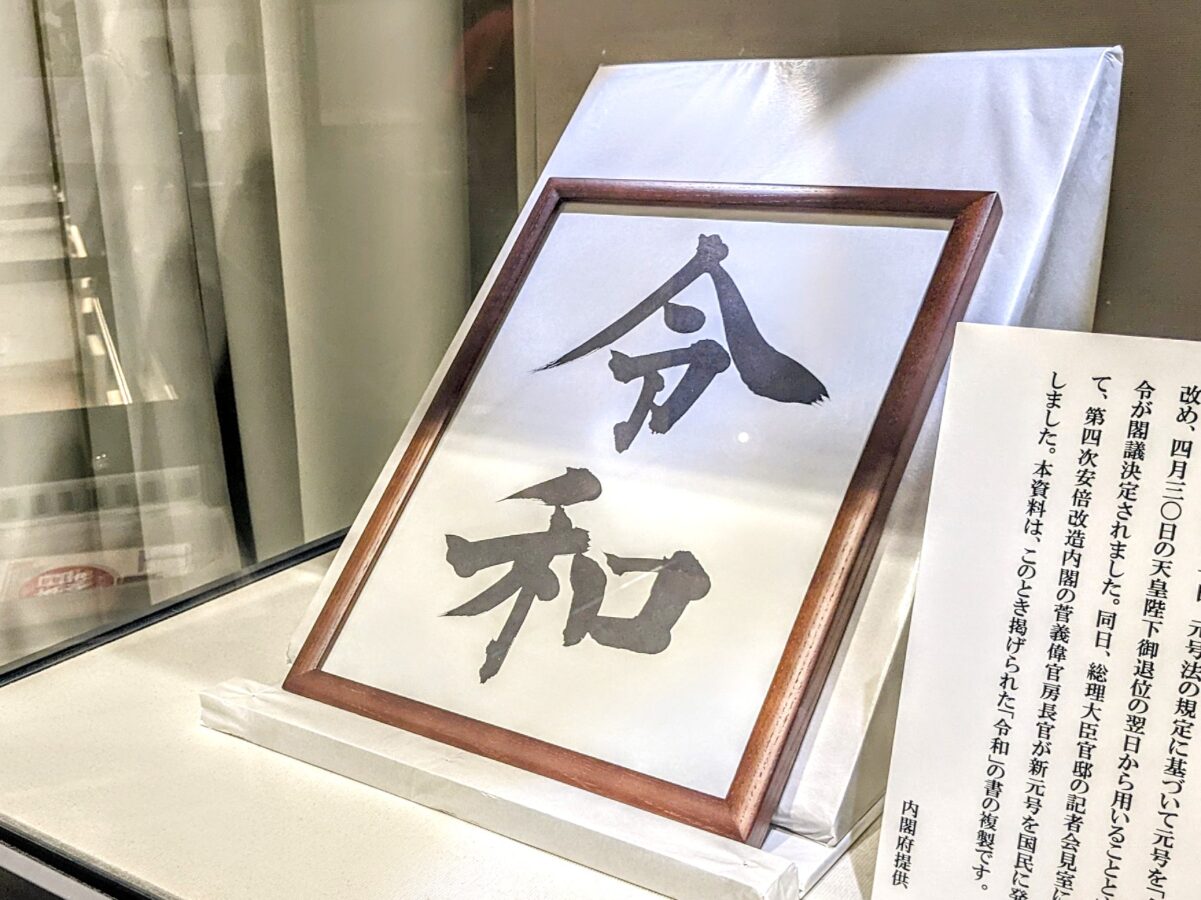 目を引くのは「令和の書」の複製。