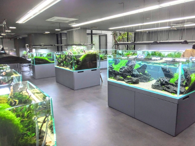 「ネイチャーアクアリウム」のコンセプトで知られるADAによる、無料のアクアリウム展示場。館内にはデザインされた水槽がずらりと並びます。隅々までデザインされた水槽たちは、まるでアート作品のように美しく輝きます。
